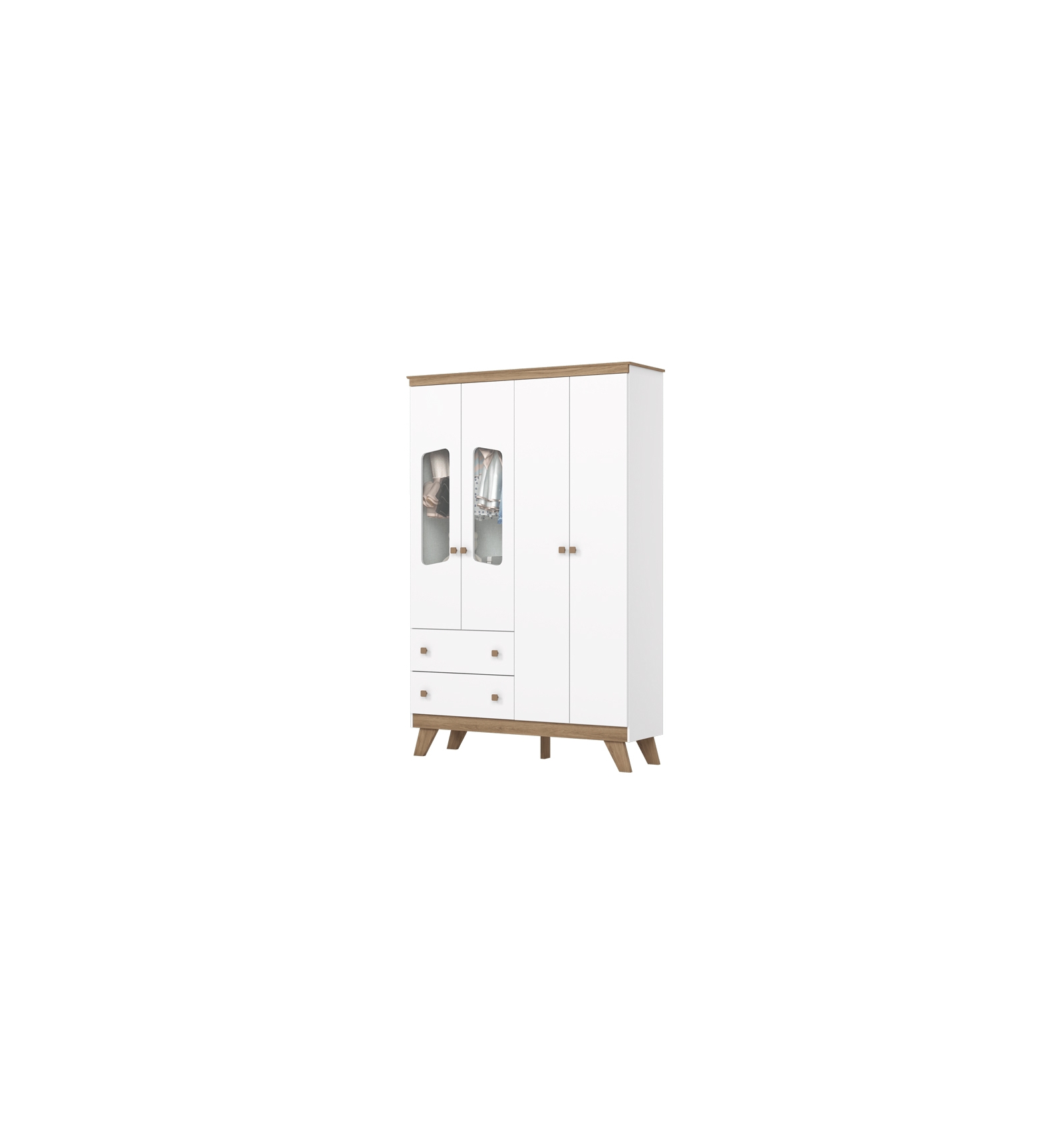 O Roupeiro Infantil 4 Portas 2 Gavetas Clown é a escolha perfeita para quem procura um roupeiro infantil espaçoso e prático para o quarto das crianças. Com dimensões de 200 cm de altura x 131 cm de largura x 41 cm de profundidade, oferece muito espaço bem organizado para roupas, brinquedos e acessórios. O acabamento branco com detalhes em madeira natural nos puxadores, pés e molduras dá um toque moderno e acolhedor, que combina facilmente com qualquer decoração.