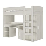 A Cama Titan combina descanso, estudo e arrumação num só móvel. O seu design nórdico em carvalho Helvezia claro traz luminosidade e praticidade a qualquer quarto juvenil.