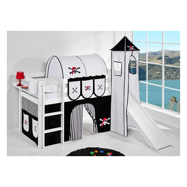 A Cama Jupiter oferece às crianças um espaço seguro e divertido para dormir. Feita em pinho maciço lacado branco, combina conforto, segurança e otimização do espaço para brincar e armazenar.