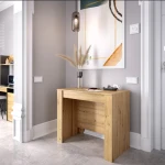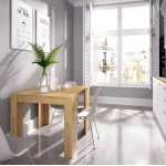 É um móvel muito versátil e funcional que pode servir como consola na sala ou mesa de escritório quando está fechado, mesa de cozinha para o pequeno almoço ou como mesa de jantar para toda a família quando o abrir Devido às suas características a mesa extensível Lexa XL é ideal para pequenos espaços.