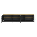 MODERNO MÓVEL DE TV DE ESTILO INDUSTRIAL COM AMPLO ESPAÇO DE ARMAZENAMENTO.