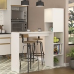 Descubra a perfeita fusão entre design e funcionalidade com a Mesa alta com prateleiras Clever na cor branca. Este móvel, projetado para otimizar cada centímetro da sua cozinha, oferece uma solução completa que combina um amplo espaço de armazenamento com uma elegante mesa integrada, ideal para refeições informais ou para apoiar suas preparações culinárias.
