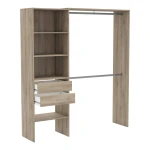 - Barra para cabide: Possui 2 barras de 119,2 cm capazes de suportar até 48 Kg. Graças à sua versatilidade, este roupeiro aberto com 2 gavetas adapta-se a pequenos espaços, pois tem uma profundidade de 44 cm e o comprimento é facilmente ajustável cortando as barras do cabide. O armario coluna com gavetas pode ser colocada à direita ou à esquerda, conforme desejar.