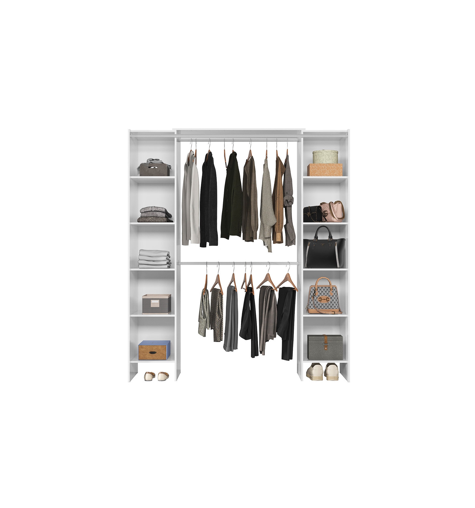 Transforme o seu espaço com o Roupeiro Aberto Bastion, uma solução elegante e funcional que mantém a sua roupa organizada e sempre acessível. Perfeito para quem valoriza o design e a praticidade em cada detalhe da casa.